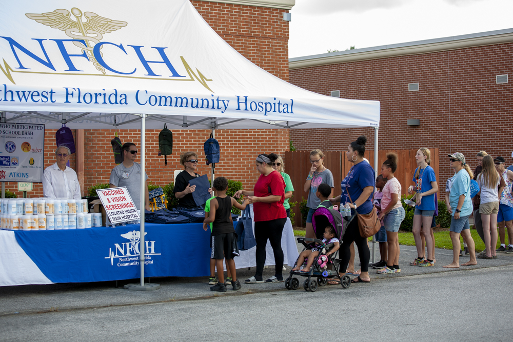 Northwest Florida Community Hospital held It’s, Back To School Bash, July 22, 2022, with various school supplies, haircuts, food and prizes.
