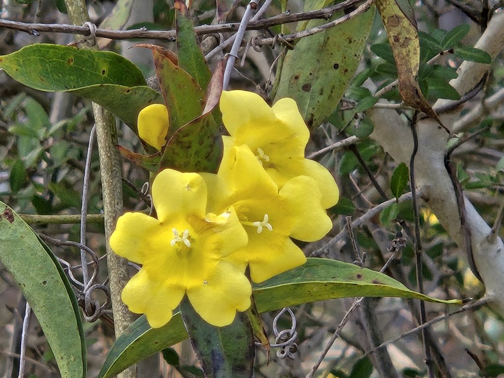 As Wildflower Chair Glenda Wilson presented Carolina Jessamine aka Gelsemium sempervirens as the monthly wildflower. The winding evergreen is the bright yellow vine in bloom now. Humingbirds and bees love it, however some parts are poisonous. It’s best to keep your animals and children away from it.