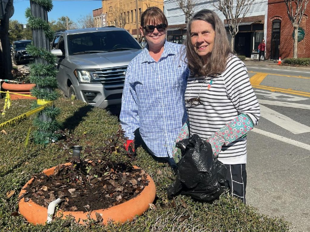 Members of Chipley Garden Club were downtown recently planting roses in our downtown pots. Downtown Pots Chairman Linda Pigott remarked, “Some of the pots were beginning to look a little sad, so we removed all the plants, added new soil, leveled the pots up, checked out the irrigation, and planted Knockout Roses in them all. This will give them a fresh, new, uniform look and make downtown Chipley look more inviting.”