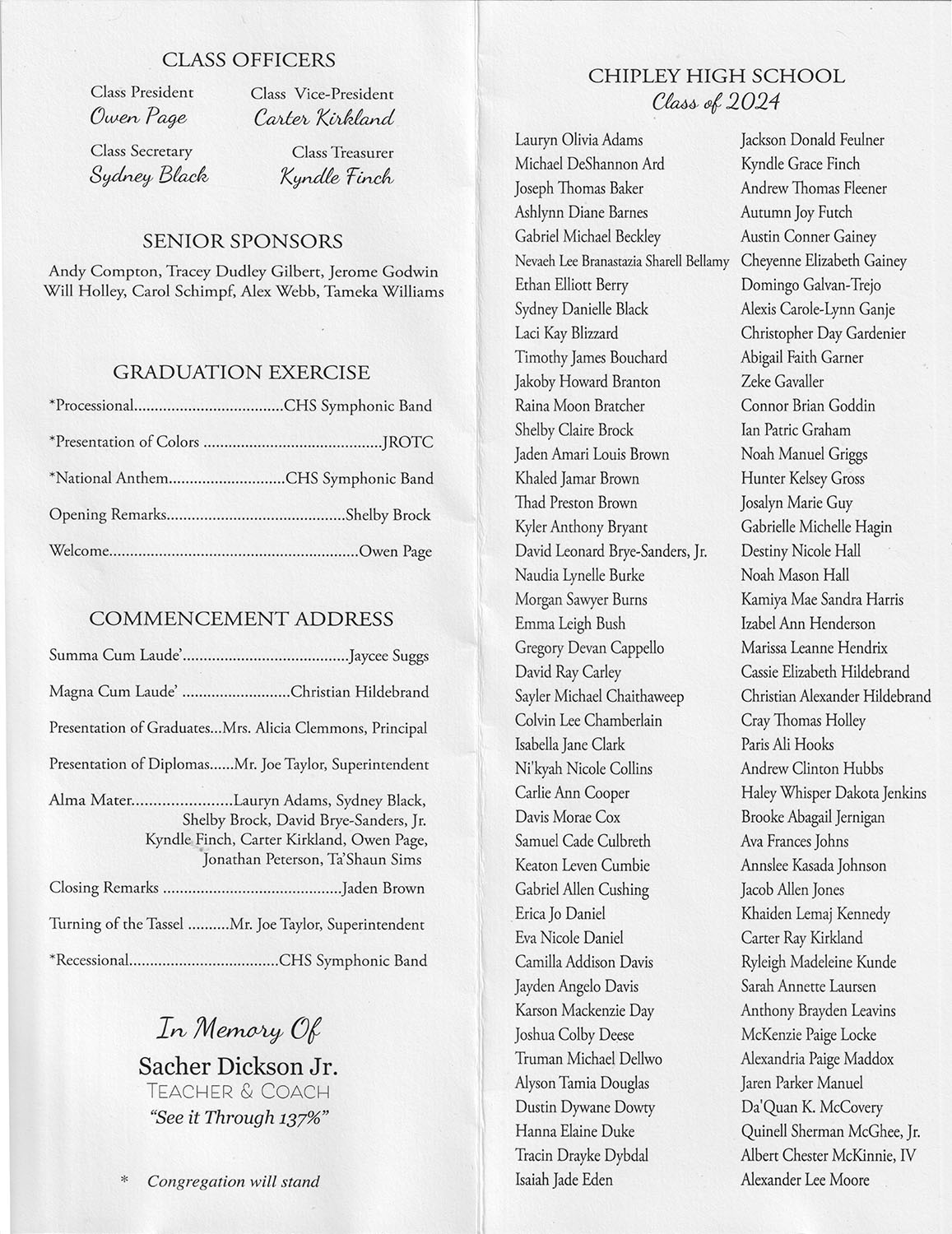 Chipley High School Class of 2024 Posted onMay 27, 2024May 27, 2024Authoreditor On Thursday, May 23, 2024, Graduation was held for Chipley High School Class of 2024.