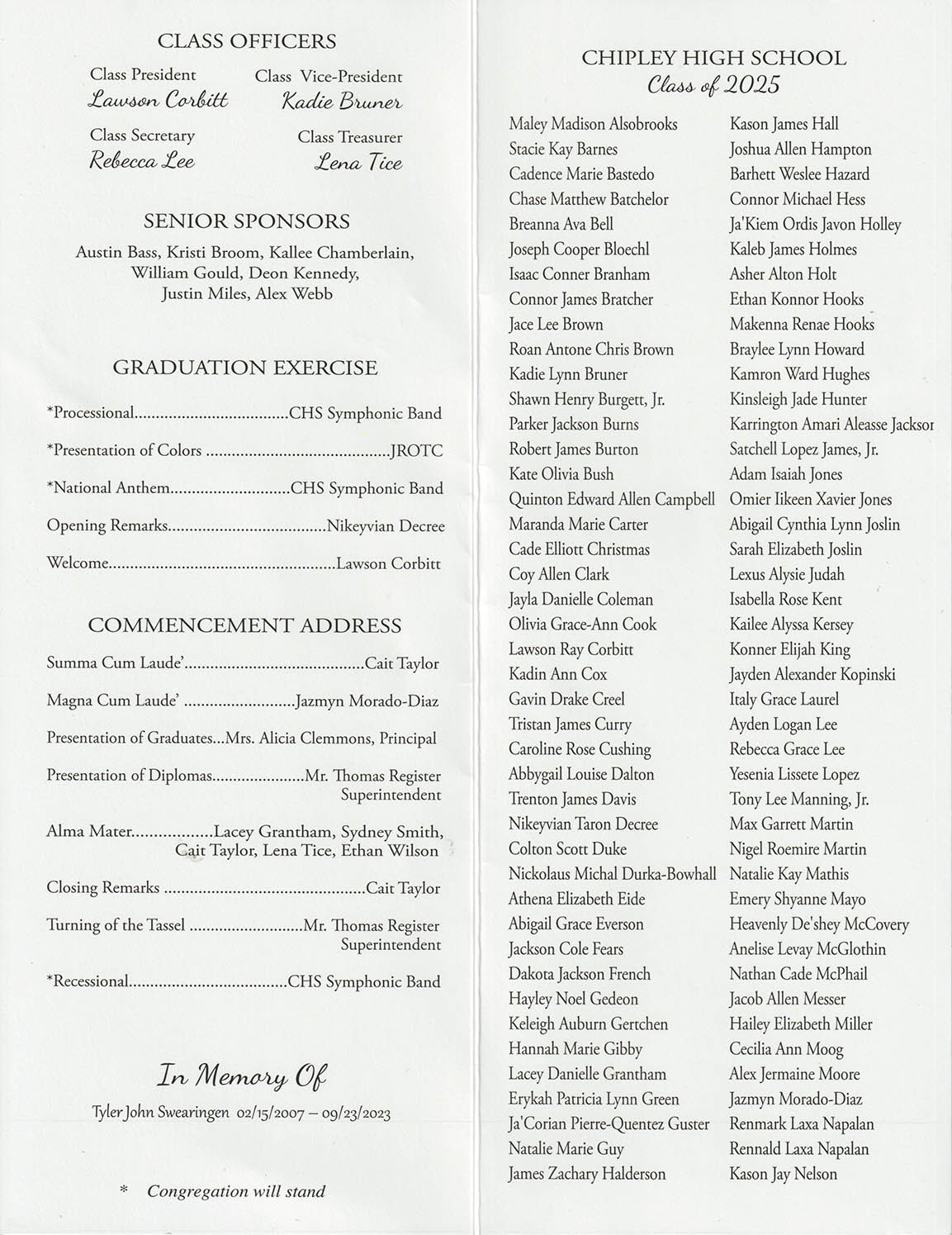 Chipley High School Graduation 2025 Posted onMay 28, 2025Authorbeth Friday May 23, 2025, Chipley held their 2025 Graduation Ceremony.