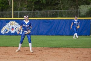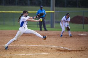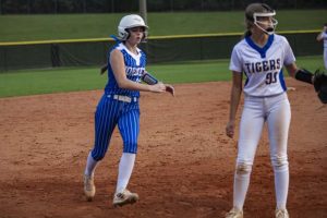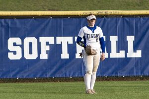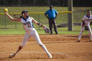 Pitching for Lady Tigers: Emily Mayo, pitched 4.66 innings, 5 hits, 2 runs, 1 earned run, 4 walks, 5 strike-outs. K. Peel pitched 2.33 innings, 3 hits, 1 run, 1 earned run, 3 strike-outs.
