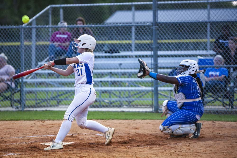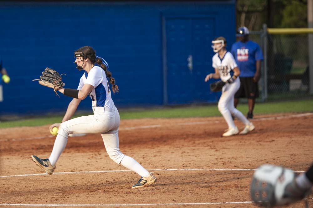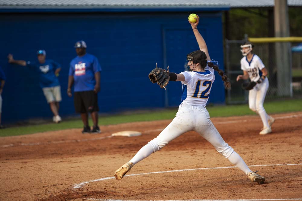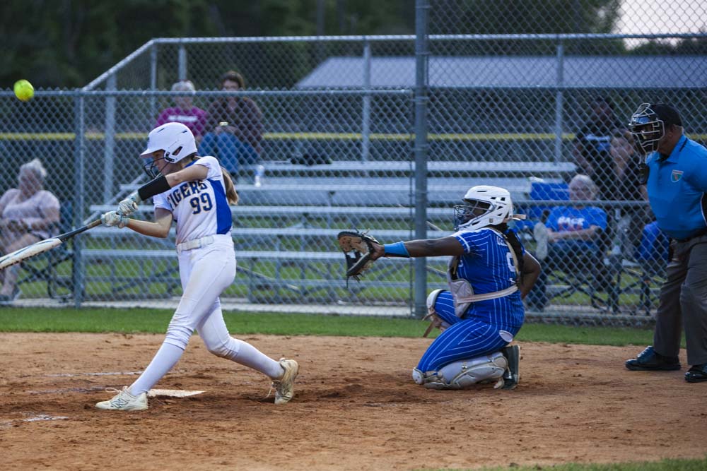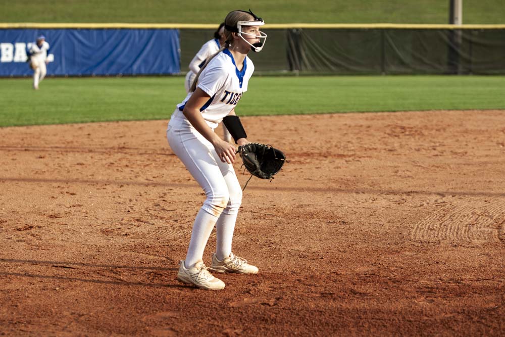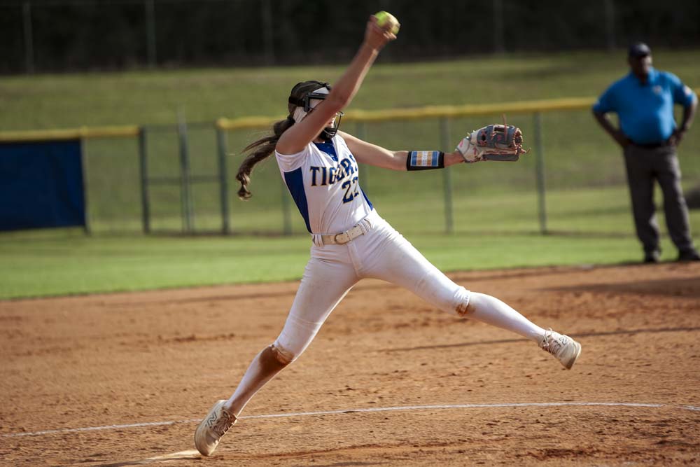 Pitching for Lady Tigers: Emily Mayo, pitched 4.66 innings, 5 hits, 2 runs, 1 earned run, 4 walks, 5 strike-outs. K. Peel pitched 2.33 innings, 3 hits, 1 run, 1 earned run, 3 strike-outs.