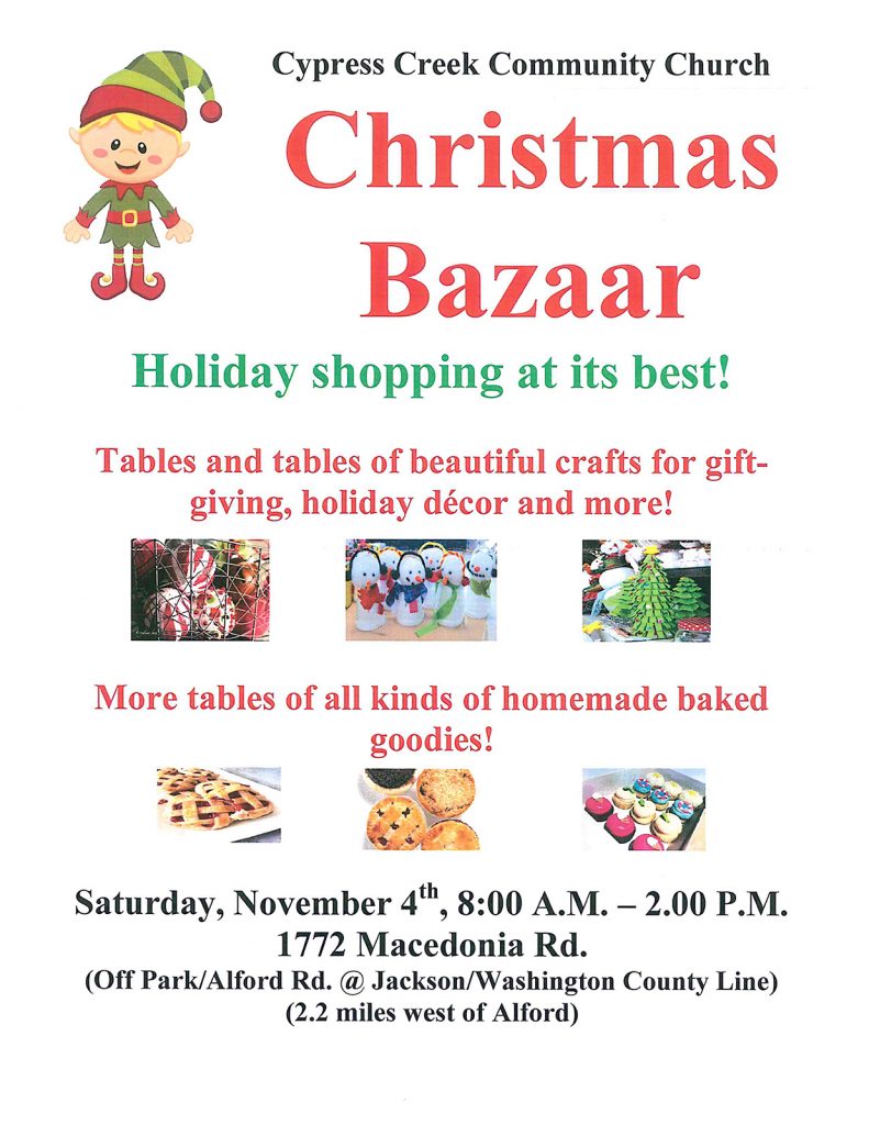 Cypress Creek Community Church Posted onOctober 31, 2023October 31, 2023Authoreditor Saturday, November 4th, 8:00 a.m. – 2:00 p.m.
