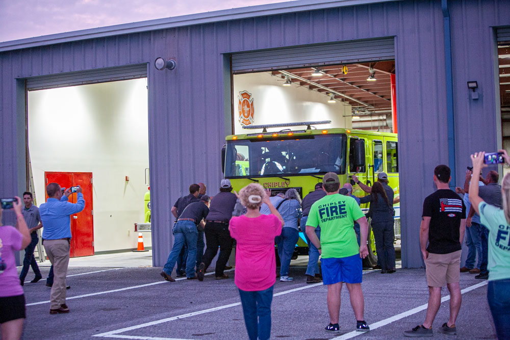 On Tuesday, 05-14-2024, the City of Chipley and the Chipley Fire Department in keeping with tradition pushed the new Engine 2 into its bay, with help from members of the community.