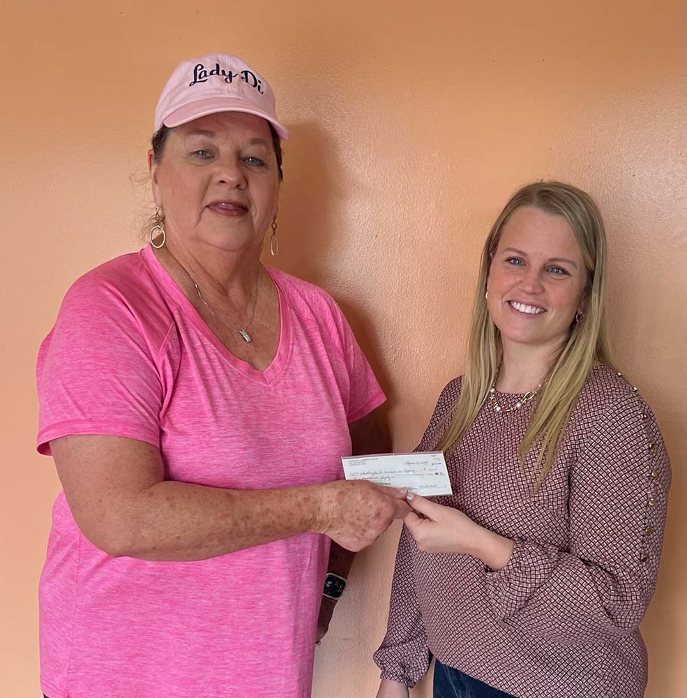 Diane Webb presenting Check to Kristin Martin for Council on Aging