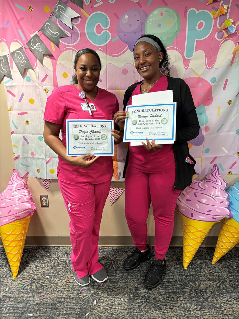 July 29, 2024- Marianna, FL – Pilya Chaney and Rameya Pinkard, valued members of the Chipola Quick Care-Alford team, have been recognized as Jackson Hospital’s Employees of the Quarter. Chaney has dedicated eight years to Jackson Hospital, while Pinkard has contributed nearly four.