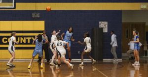 Scoring for the Lady Tigers: S. Hogan3, J. Staten 5, S. Hogan 7, N. Garner 11, S. Douglas 5, Z. Nedd 10.