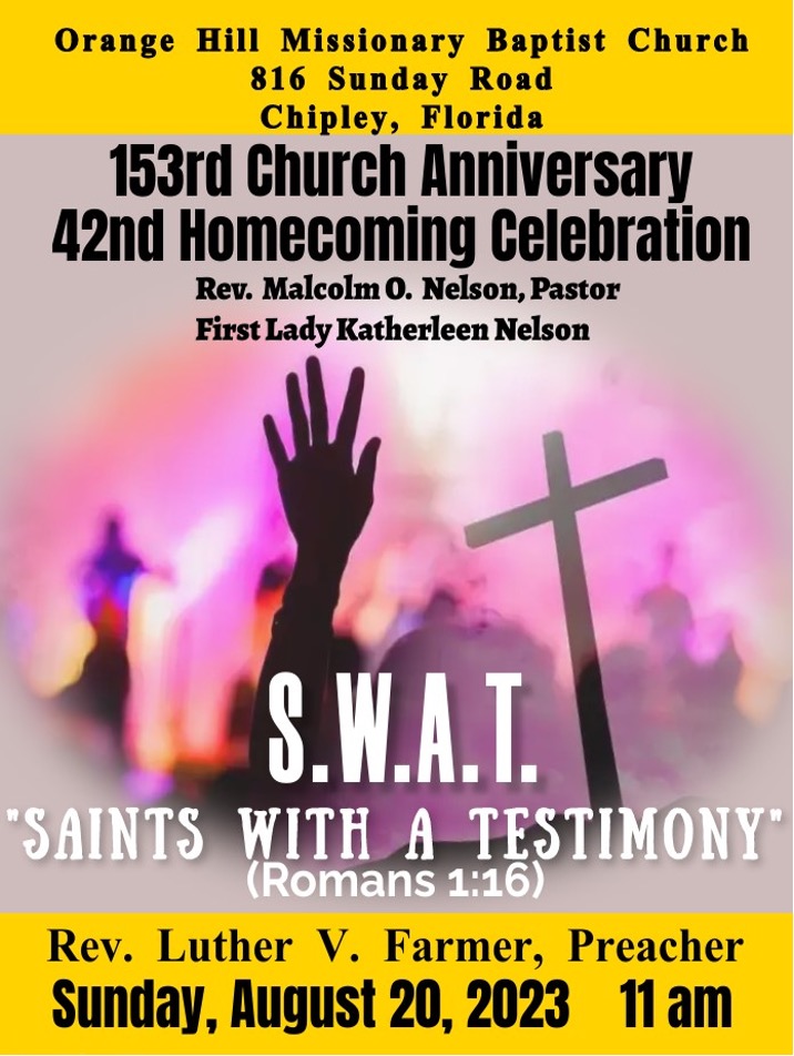 Orange Hill Missionary Baptist Church Posted onAugust 7, 2023Authoreditor 153rd Church Anniversary, 42nd Homecoming Celebration.