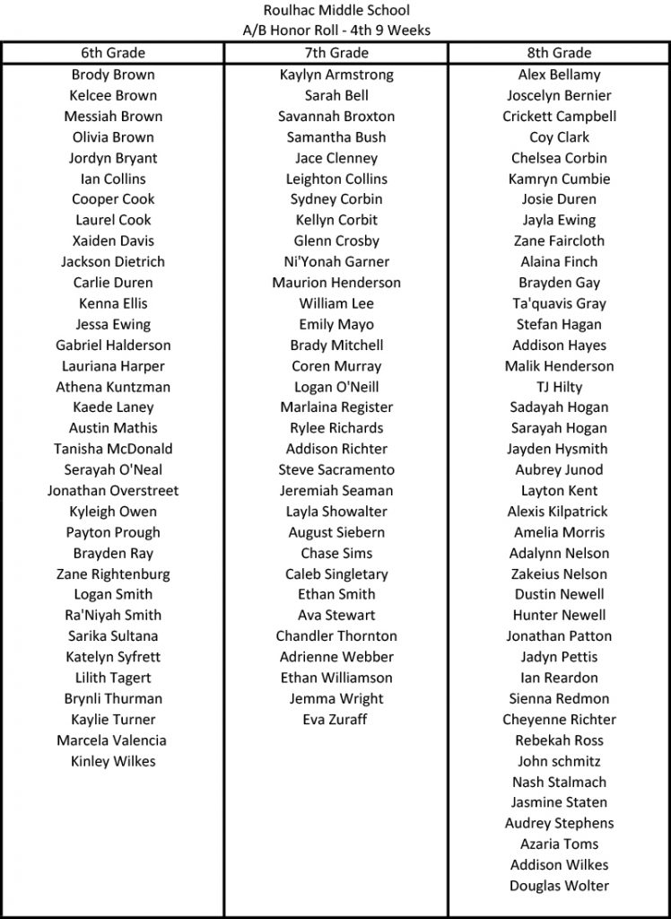 Home »Local News»Schools»RMS»RMS 4th 9 Weeks- A-B Honor Roll