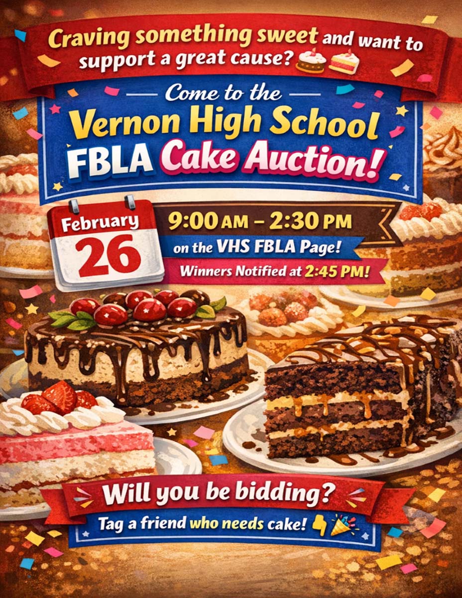 Vernon High School FBLA Cake Auction Posted onFebruary 11, 2026Authorbeth You want something Sweet and want to support a great cause?