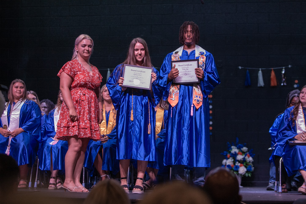 Summa Cum Laude: Kinslee Wheeler, Ashley Burke, Aaliyah Parsons, Isaiah Markham, Aili Kangas, Aubrey Vaught, Lauren Moon, Angel Reed, Dylan Dowda, Kelly Teeling-Fields, Tamia Potter, Isabel Greubel, Rowan Whitaker, Highty Brock, Darin Sparks, Kaden Peterson